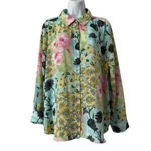 This Rose + Olive XL blouse is the kind of top that makes getting dressed feel effortless. The multicolor floral patchwork print brings instant boho charm, while the collared neckline and button-front keep it polished. Lightweight, silky-feel polyester drapes nicely for a regular fit that works tucked or loose. Wear it to the office, brunch, casual Fridays, or weekend plans with jeans or trousers. Condition: