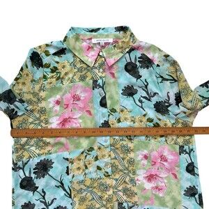 Rose + Olive Floral Sheer Boho Top XL Multicolor Patchwork Button Up Y2K Blouse