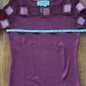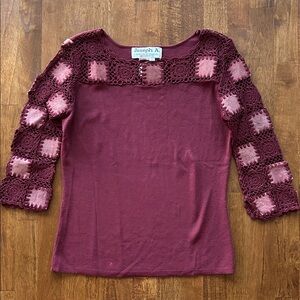 Joseph A. Granny Square Crochet Top, Boho-Chic Retro Y2K Style, Burgundy, Size L