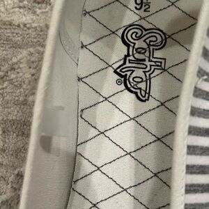 Soho Women’s Sz 9.5 Casual Ballet Flat Shoe Comfort Gray Stripe Slip On Low Top