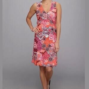 PRANA Pink & Orange Paisley Athleisure Twist Dress w Built-In Bra Size L Stretch