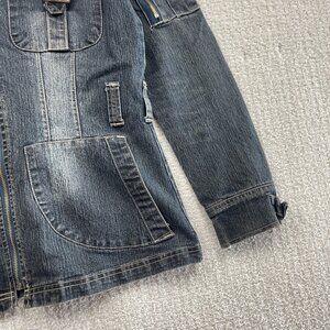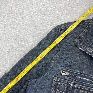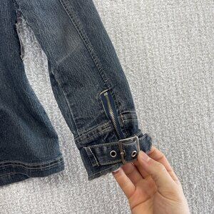 Y2K 725 Originals Dark Blue Denim Moto Cafe Racer Jacket Military Wom Sz S 2000s