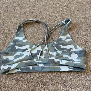 NWT bra in greenish/blueish/grayish camo colors. Cross back strappy detail.