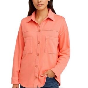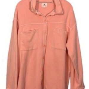 Sundrys size 3 is a size large. Oversized. Stylish peach/salmon button-up shirt with front pockets. Perfect for casual wear.
