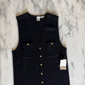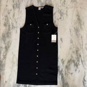 Clifford & Wills Black Sleeveless Dress with Gold Accents 100% wool