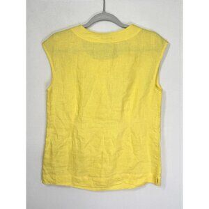 Talbots Sleeveless 100% Linen Top Size 4 Dandelion Yellow Bow Accent Split Neck. Sleeveless/ short cap sleeve. Gently used with no flaws found. Material tag is fading but states “100% linen Machine was cold”. Measurements in photos. Fast shipping!