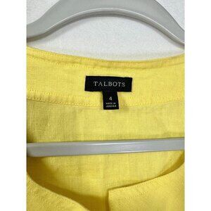 Talbots Sleeveless 100% Linen Top Size 4 Dandelion Yellow Bow Accent Split Neck