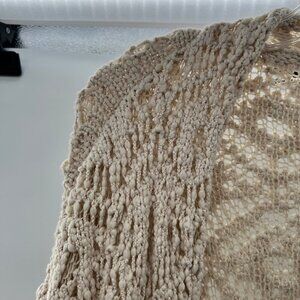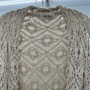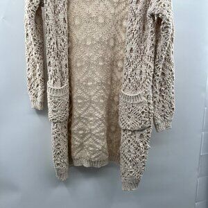 Selfie Couture Open Crochet Knit Cardigan Open Front Cream Size XS/S Pockets