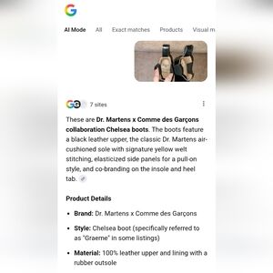 Adding a picture from RealReal to show that the black leather pull tab is legit and a design intent to indicate these are the collab boot. Also added a Google image search to show a little more info on this collab.