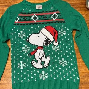 Peanuts Festive Green Snoopy Christmas Sweater Women’s XS