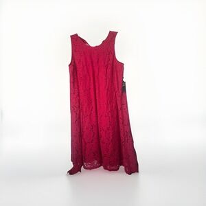 NY Women's Pink Rose Dress XL Red with Lace Below The Knee Short Sleeve