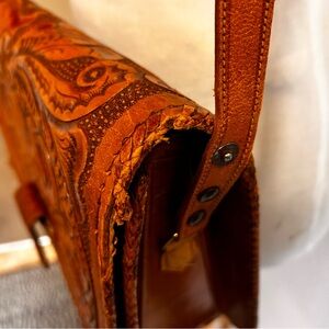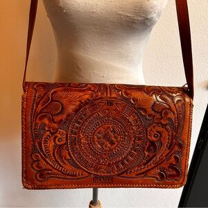 Handcrafted Leather hand tooled Mexican Floral Bag