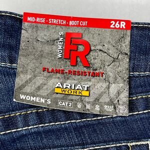 Ariat women's flame-resistant (FR) mid-rise stretch bootcut jeans size 26R. In Blue Quartz Wash. New with tags