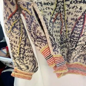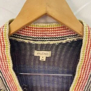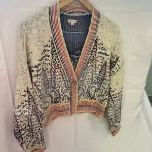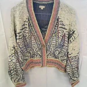 Pilcro Anthropology Cropped Cardigan Sweater Cream and Blue Medium