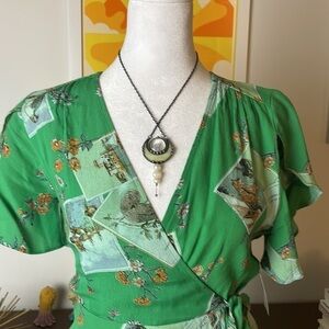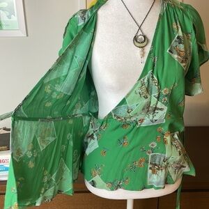ANTHROPOLOGIE | Meadow Rue GREEN Bon Voyage Wrap Waist Tie Blouse Size 4
