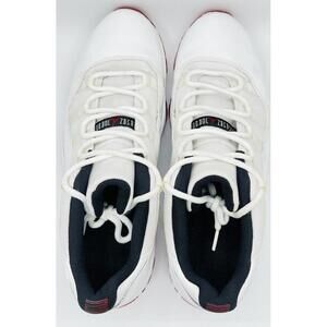 Step out in classic style with these Air Jordan 11 Retro Low “Cherry” sneakers. Featuring a white ballistic mesh upper, glossy white patent leather mudguard, and bold varsity red outsole, these kicks combine comfort and iconic Jordan design. Great condition with minimal signs of wear. 100% authentic.