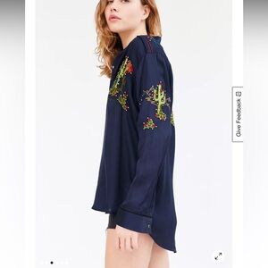 BDG Cowgirl silky Navy Embroidered Navy Women's Top urban outfitters