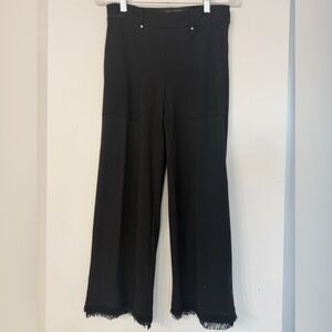 Lysee New York Women’s Small Black Fringe Hem Stretchy Crop Straighten Leg Pants