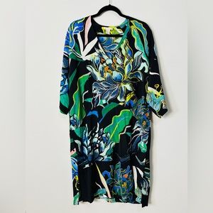 Tropical Floral Print V-Neck Pull Over Dress With Button Down Side Splits Size 6