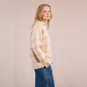 Molly Bracken Knitted V-Neck Sweater in Pink and Cream Sz S NWT