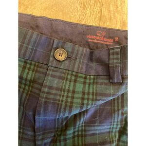 Discover classic preppy style with these Vineyard Vines plaid pants. The timeless navy and green tartan pattern evokes a sense of heritage and outdoor adventure. These versatile chinos offer a polished look perfect for family gatherings, school days, or exploring the great outdoors. Designed for comfort and durability, they are ready for any occasion from a backyard barbecue to a holiday celebration.