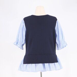 Anthropologie Layered Poplin-Sleeve Sweater Navy Stripe Size XL