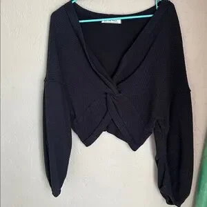 We the free waffle crop top! Comfy with high waisted shorts. More of a dark navy than black.