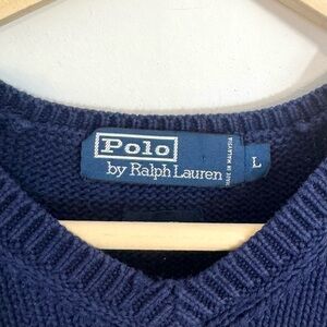 Ralph Lauren Vintage 90’s Navy Blue Cotton V-Neck Sweater Vest Men’s Size Large