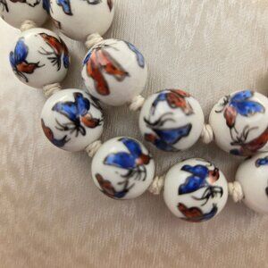Porcelain Hand Painted Butterfly Beaded Necklace Vermeil Clasp