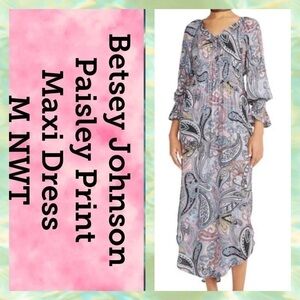Betsey Johnson Dress Women’s M Maxi Paisley Print Multi Bishop Sleeves NWT