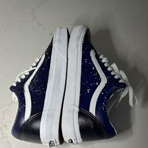 Vans sneakers with a striking black and blue design. White details add contrast. Ideal for everyday style.