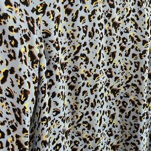 Excellent pre-owned condition with no stains, tears or flaws. The tag is a little loose on one side. No other issues. 100% silk, dry clean only. Blue background with a yellow brown and black cheetah design on top.