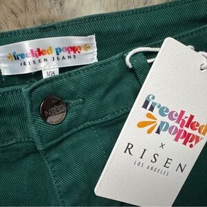 NWT Risen Look At Me High Rise Green Jeans Ankle Cuffed Barrel Size 3