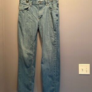 Carhartt men’s jeans in a clean light wash that looks good with everything. The relaxed fit gives you room to move, while the straight leg keeps the silhouette classic and easy to wear. Built with a 5-pocket layout, belt loops, and a zip fly with button closure, plus a logo patch detail for that signature finish. Great for workwear days, weekend errands, or casual nights out. Condition: pre-owned.