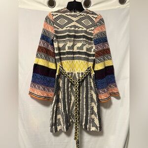 Free People Knit patchwork mini dress with bell sleeves and belt