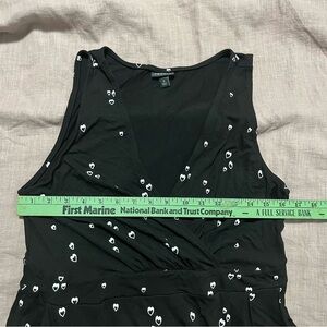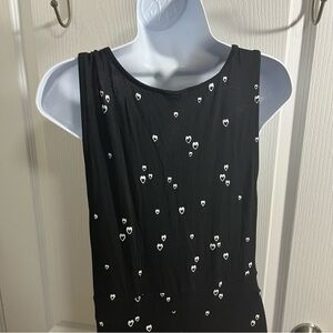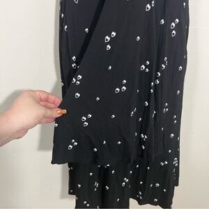 Chic black midi dress with white heart accents. Sleeveless design. Perfect for versatile styling.