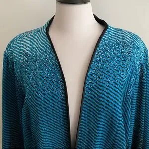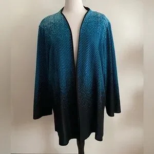 Ming Wang Acrylic Black & Blue Cardigan Jacket Plus Size 3X, in very good preowned condition. No flaws.