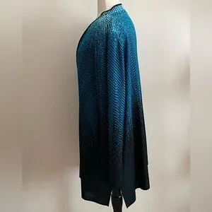 Ming Wang Acrylic Black & Blue Cardigan Jacket Plus Size 3X Side Vents