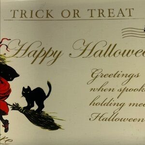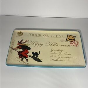 Vintage Looking Halloween Trick or Treat Rectangular Serving Plate 13x8 1/2