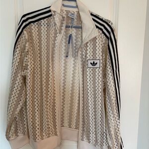 Adidas Women's Cream and Black Mesh Bomber Jacket