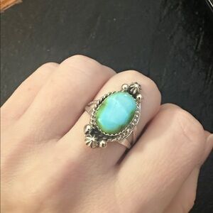 Elegant turquoise ring set in silver. Perfect for adding a pop of color to any outfit.