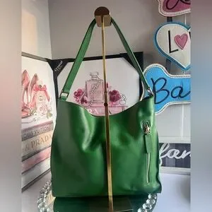 Tote Le Monde Florence Green Pebble Leather Shoulder Bag ($595 Retail)