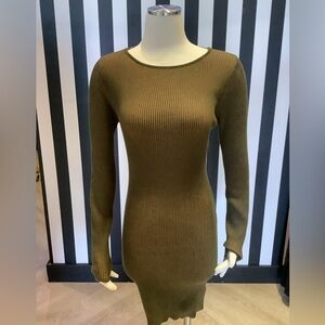 Elevate your style with this chic olive ribbed bodycon dress. Perfect for any occasion, this dress offers both comfort and elegance.