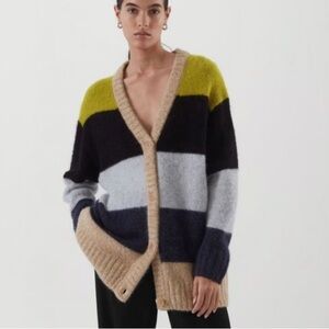 COS Alpaca Wool Blend Stripe Oversized Cardigan Sweater size XS Black Gray in excellent condition.