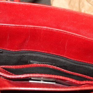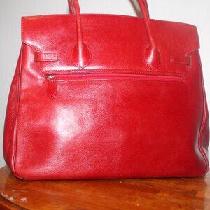 $498 Designer True Red Juliana Collezioni Status Leather Tote Bag w Lock & Key