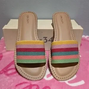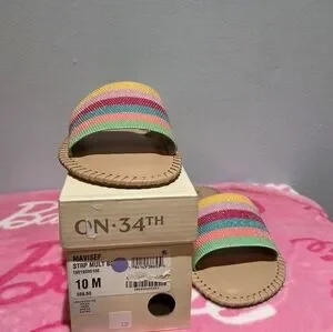 On 34th Women's Mavise Beaded Flat Beaded Striped Slide Sandals, Size 10M. NIB.