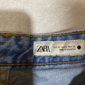 Zara blue women 0 straight leg denim jeans distressed bottom. SKU430#denim