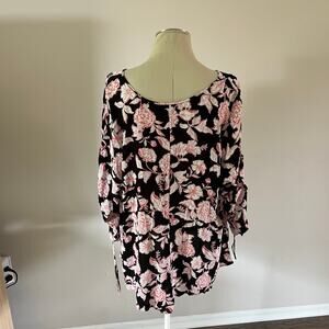 Lane Bryant Black Pink Floral Long Sleeve Blouse Plus Size 28 Office Career Work