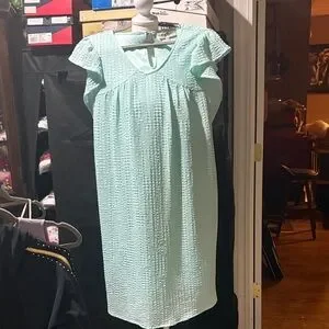 FIRM PRICE $20 CLOSE OUT Mint green nightgown sz S. I received in a mystery box so unknown if NWOT or EUC looks brand new. Gown has a textured design throughout and ruffled cap sleeves . Length below the knee. Very cute, cozy and roomy > says S but definitely could fit a medium too.