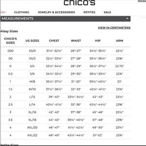 Size- Chico's size 3 which is equivalent to a US 16 or XL